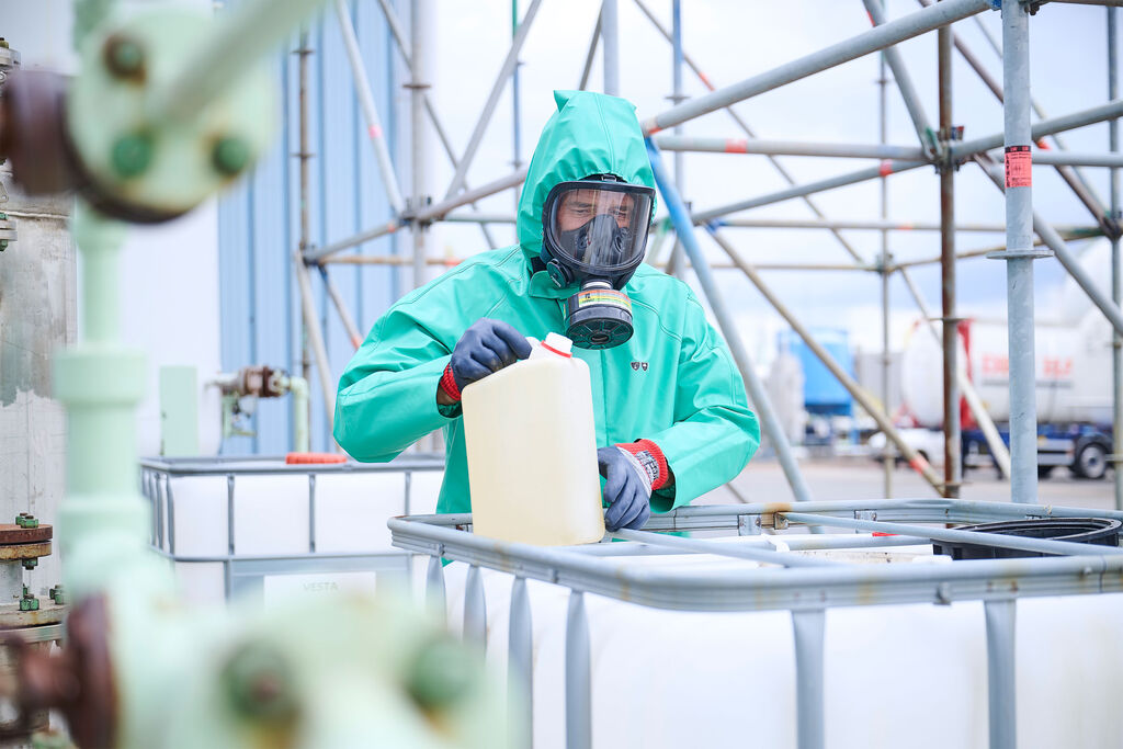Dank des doppelseitig PVC-beschichteten Polyestergewebes ist der Essen-Overall perfekt für den intensiven Einsatz in industriellen Umgebungen geeignet. Der Overall ist außergewöhnlich stark und reißfest und schützt Sie vor Chemikalien, Öl und Fett. Die feste Kapuze mit Schirm und die elastischen Stulpen in den Ärmeln und an den Knöcheln bieten zusätzlichen Schutz.
