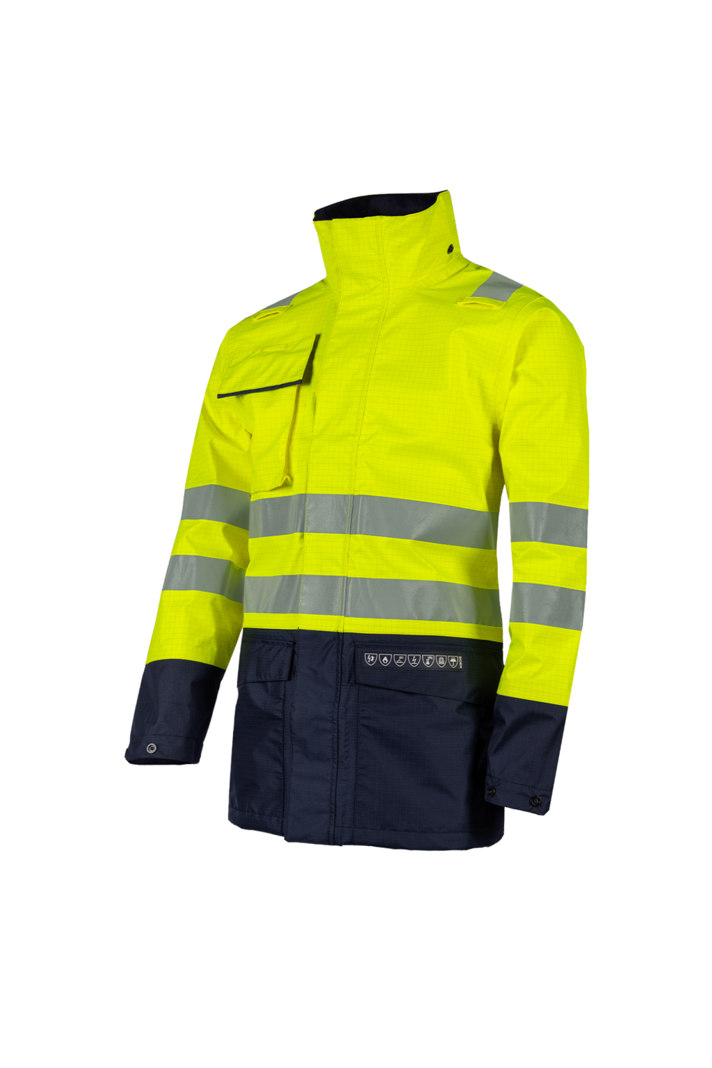 A light jacket that offers you a very high level of protection, including ARC protection, is that possible? Yes it is. Our hi-vis Kaldvik rain jacket is made out of the new lightweight (280 g/m²) Siopor® Excell fabric and complies to many international standards like IEC 61482-2, EN ISO 11612, EN ISO 11611, EN 13034 and EN 1149-5 amongst others. Thanks to our I.L.S. system different linings can be zipped in this soft and supple jacket. Furthermore, the Kaldvik has many practical features like the possibility of attaching a hood (available separately), narrowing the sleeve ends, 1 chest pocket, 2 inside pockets and a practical zipper grip for easily opening and closing the jacket.
