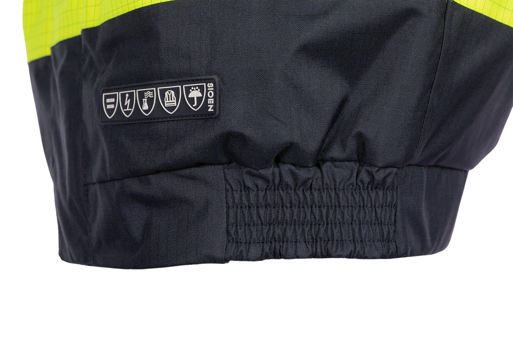 The Jibou is a multifunctional bomber jacket that protects you against many hazards. The bomber jacket is on the inside completely lined with a fixed flame retardant cotton lining. The outer fabric is a strong and high-breathing water repellent and coated fabric which makes the jacket wind and waterproof. For extra protection against the cold and the rain it is possible to narrow the sleeves, to zip in a fleece lining and attach a hood (both to be bought separately).