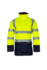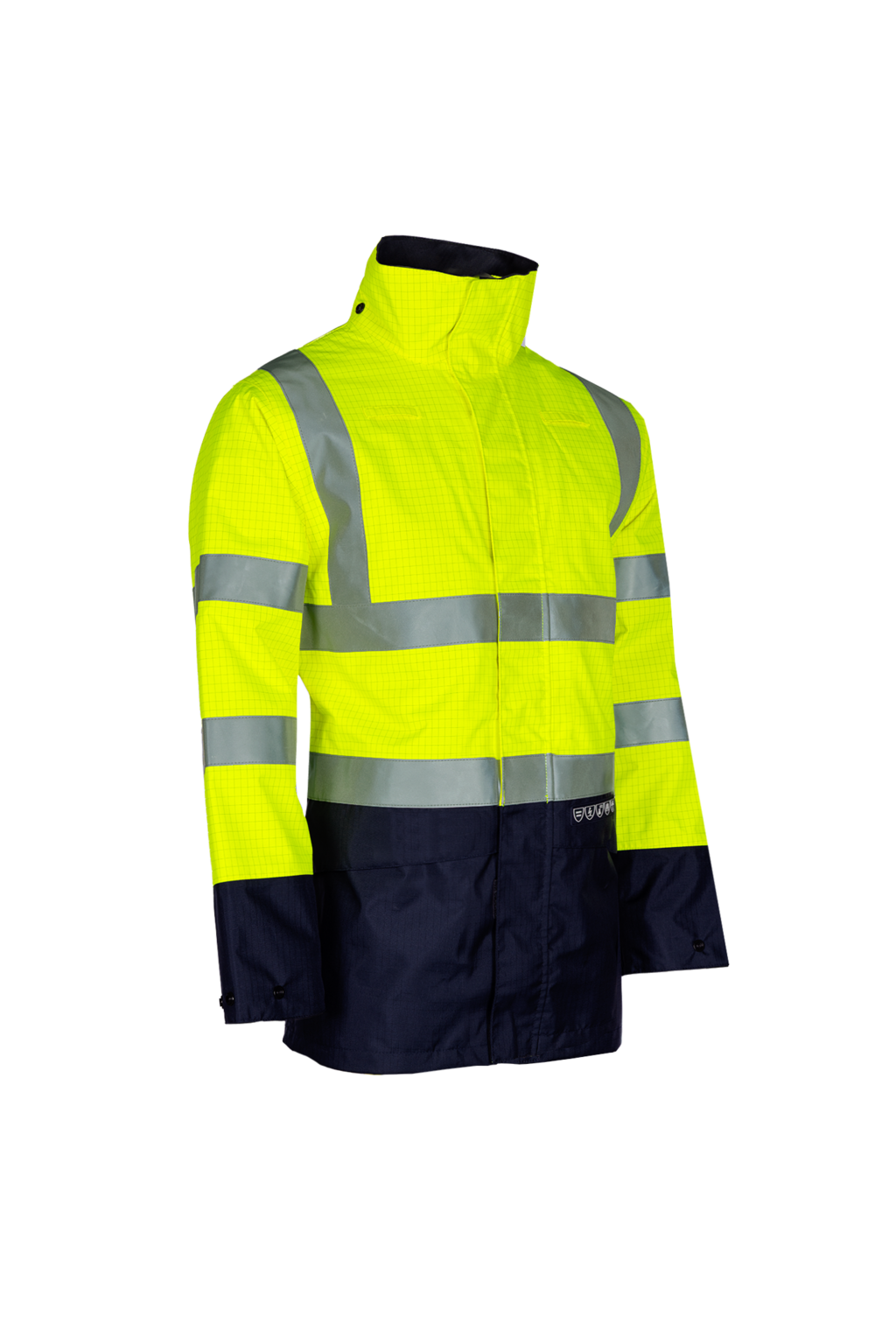 The Elliston is a flame retardant and anti-static hi-vis raincoat that has two contrasting colours with reflective FR strips. The fabric used is perfectly waterproof and never gives you a clammy feeling thanks to the breathable coating. A hood (sold separately) can be attached to the standing collar or it can be stored inside the jacket in a specially provided pocket. With one extra inner pocket, two patched pockets, two loops for gas detection meters and sleeve narrowing by press studs this is a very functional coat. This jacket can be combined with two separately available fleece linings that can be zipped in during colder weather.