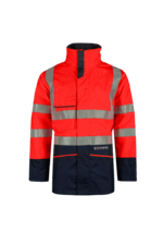 Flame retardant, anti-static and waterproof, are the main assets of the Hedland. This rain parka has been stylishly designed in a two colour pattern and is equipped with flame retardant reflective tape. It is a very functional parka with two pockets, one chest pocket, one Napoleon pocket, one inside pocket and two loops for gas detection meters. In addition, the separately available hood can be attached to the standing collar or stored in the special inner pocket. The Hedland has sleeves that can be narrowed, and a cord in the hem. Thanks to the I.L.S. system, various fleeces, liners and softshells can be zipped in.