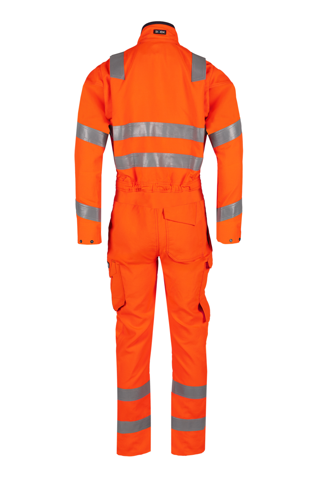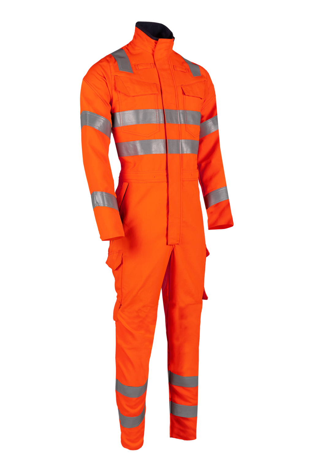 Working in an area where an electric arc flash hazard exists? These multinorm coveralls are made of an inherently flame-retardant fabric that is hard-wearing, lightweight (260 g/m²) and offers excellent protection. Thanks to their unicolour high-vis orange colour, they also meet the requirements of the British RIS-3279-TOM standard for high visibility clothing worn by people in the rail industry. | The Hunor coveralls are the UP-dated version of the Warwick (892V).
