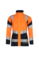 Crafted from our high-performance, inherently flame-retardant "Sio-Safe™ Extra Light" fabric, this lightweight ARC jacket is designed specifically for female professionals. It provides outstanding protection against electrical flashover while also meeting EN ISO 20471 standards for high visibility. The vibrant colour combination hi-vis orange / navy blue and the ergonomic fit contribute to a protective garment that looks great and feels even better to wear.