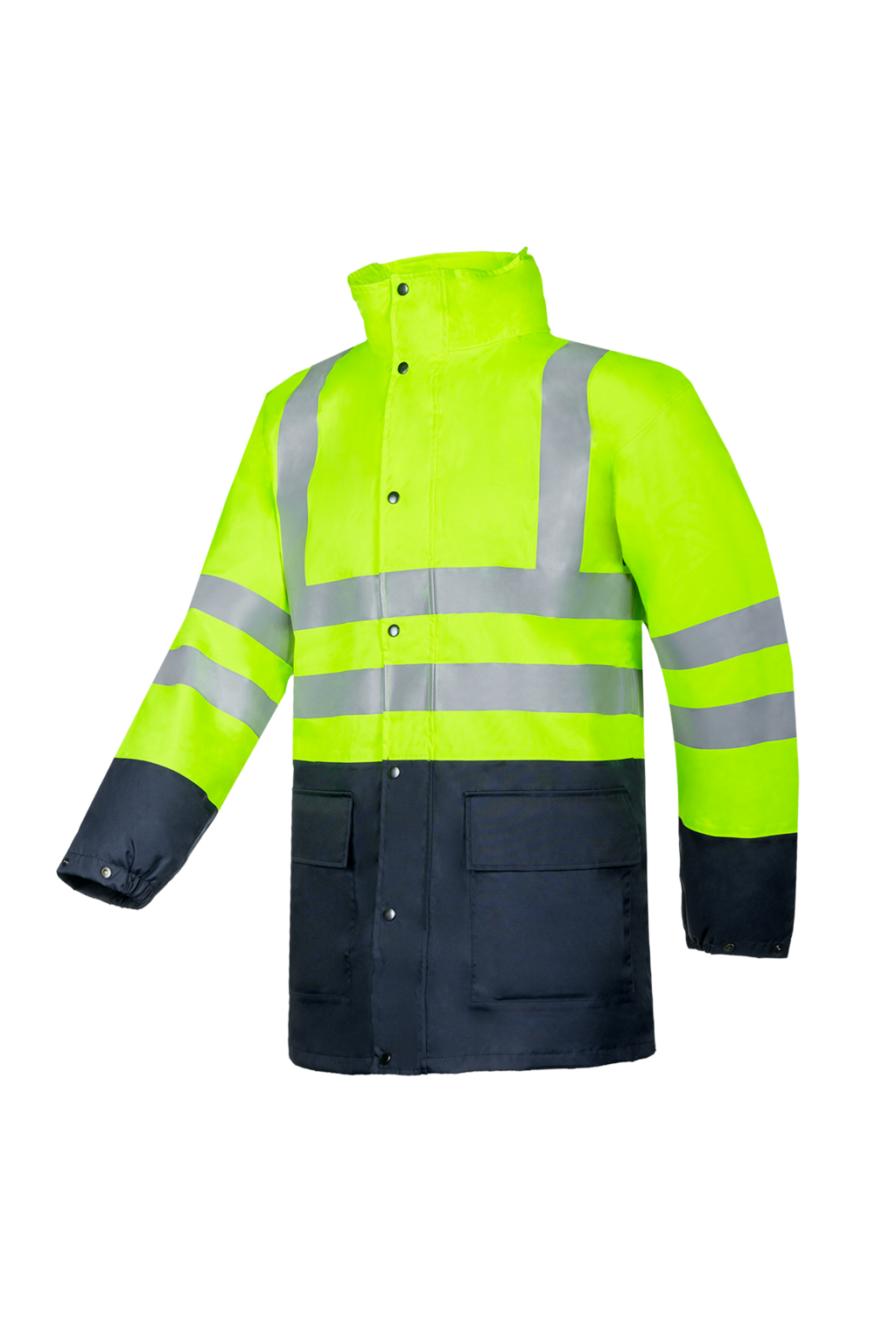 Hi-vis winter bomber jacket with detachable sleeves
