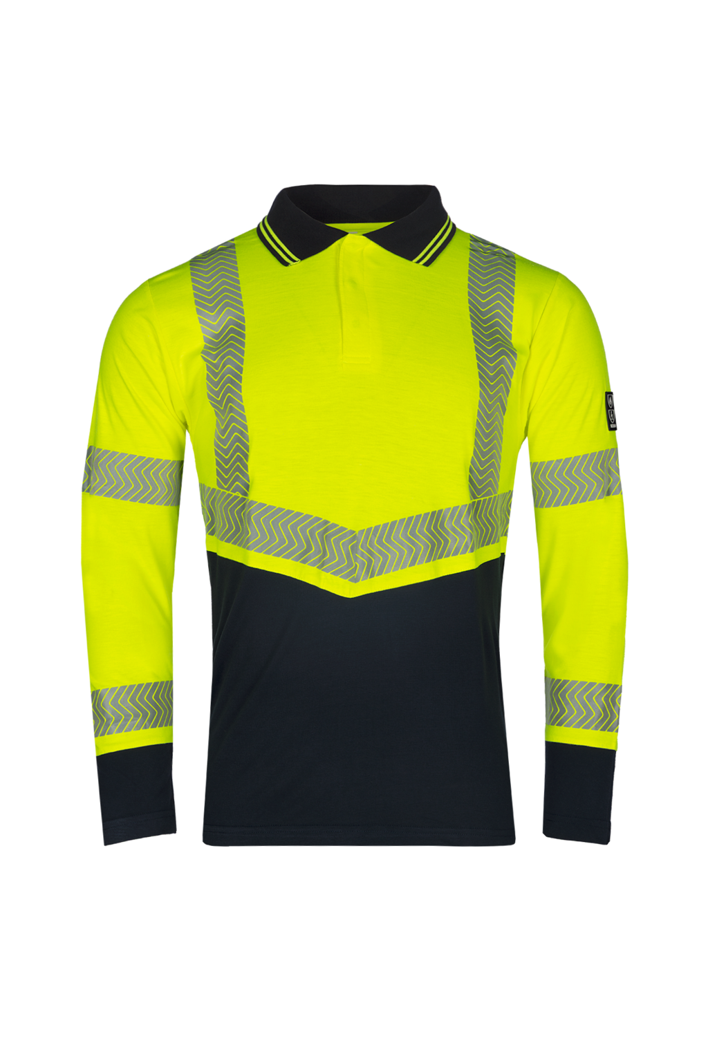 Flame-retardant, anti-static high-vis polo shirt, long sleeves