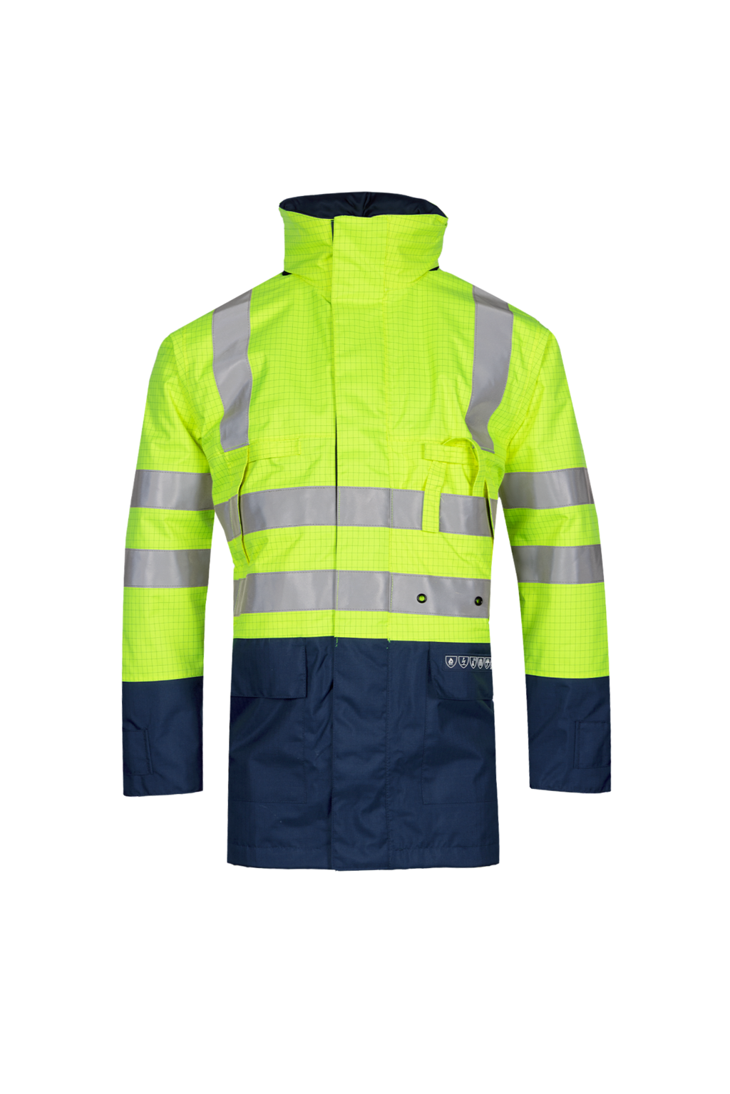 Flame-retardant, anti-static high-vis rain jacket