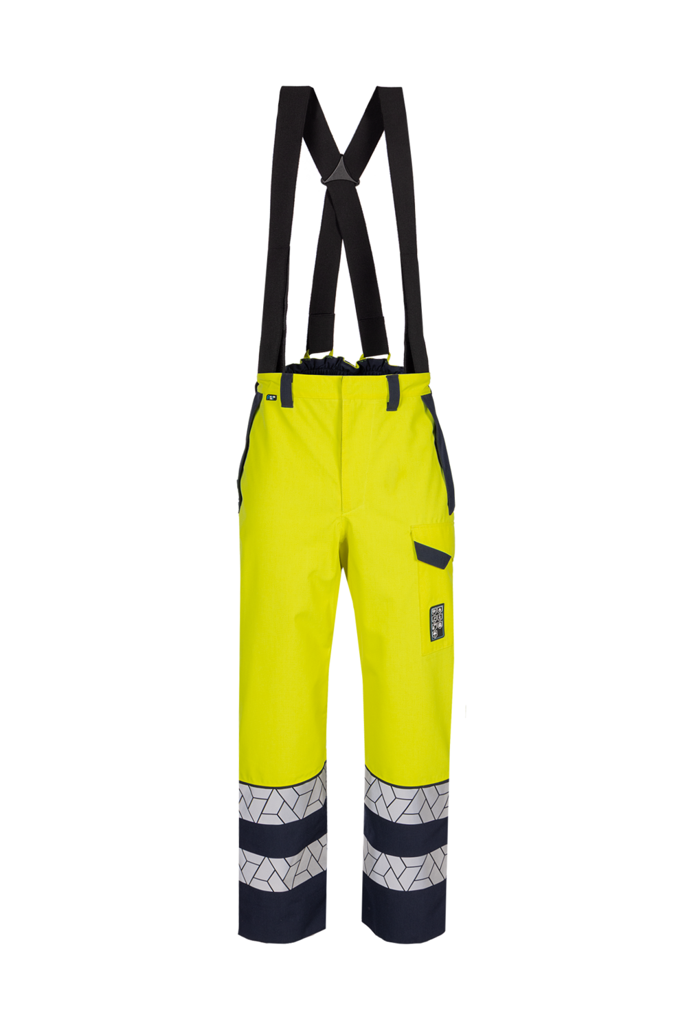 The Amstor rain trousers offer EN ISO 20471 Class 2 visibility and advanced ARC protection (APC2) for complete multinorm safety in wet conditions. Windproof, waterproof and breathable with taped seams, they ensure reliable weather resistance. A comfortable fit and elastic braces allow easy layering, while long leg zips make them effortless to put on without removing your shoes.